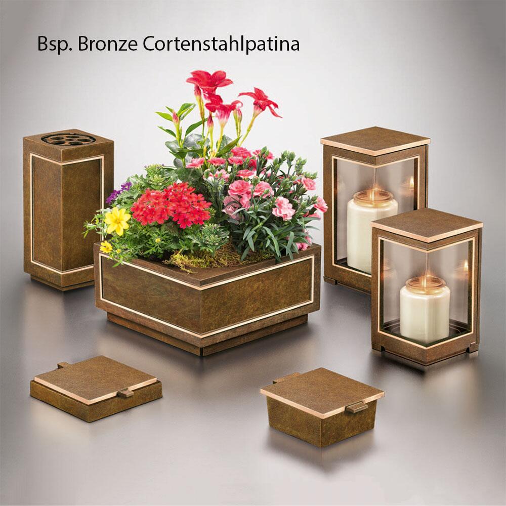 Bronze ist extrem robust gegenüber Frost, Nässe sowie Hitze und sehr langlebig. Die Patina wird per Hand aufgetragen und führt aufgrund variierender Farbnuancen zu einer Einzigartigkeit jeder Skulptur. Die Farbe kann somit leicht vom Bild abweichen. Die Reinigung sollte ohne chemische Substanzen erfolgen, um die Schutzschicht nicht zu zerstören und kann einfach mit einem feuchten Tuch erfolgen. Der Grabschmuck wird für die Befestigung an einem Stein mit Bohrungen an der Rückseite ausgestattet. Passende Gewindestifte liegen der Lieferung bei. Die Fertigung mit einer Cortenstahlpatina ist möglich. Im Gegensatz zu richtigem Cortenstahl liegt der Vorteil im Nicht-Verlaufen der Rostpatina bei Nässe. Aufgrund des Hohlgusses sind die Skulpturen trotz der massiven Bronze recht leicht und können somit problemlos überall aufgestellt werden.